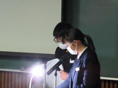 意見発表は土肥室からの発表です。FFJの旗を背に、落ち着いた発表ができました。