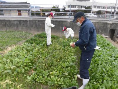 かなりな量の落葉です。またミズナを収穫し商品化しました。