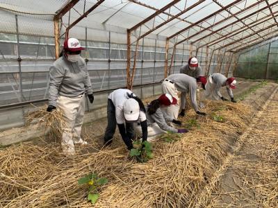 ハウスの中は、32℃ほどありましたがみんなで協力して行いました。