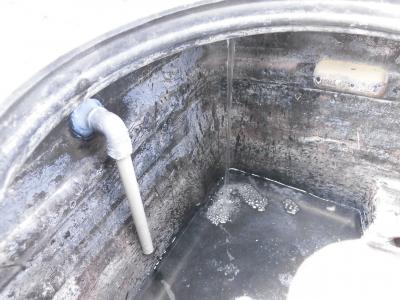 発電されポンプが水を汲み、この100リットルのタンクに入ります。一定の水位に達するとサイフォンの原理で