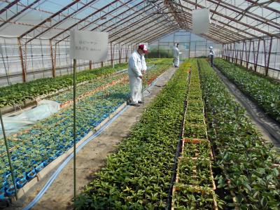 野菜苗の状態を確認したり、野菜の品種ごとに札を立てたり、販売する際に利用する段ボールを準備しました。