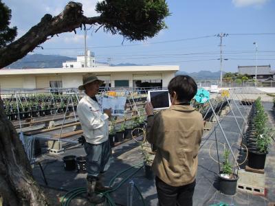 菊作りの講座をスタートさせました。カメラマンを務めるは岩本教諭。