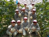 今日からマスクメロンの収穫が始まりました。3年生で1番早く収穫できたのは、菅さん(東予東中学校出身)と曽我くん(小松中学校出身)でした。1年生の総合実習もあり、収穫を体験しました。