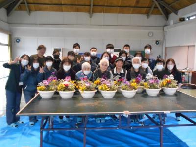 田野公民館で、西条市包括支援センター丹原さんが主催の「春の寄せ植え講習会」を行いました